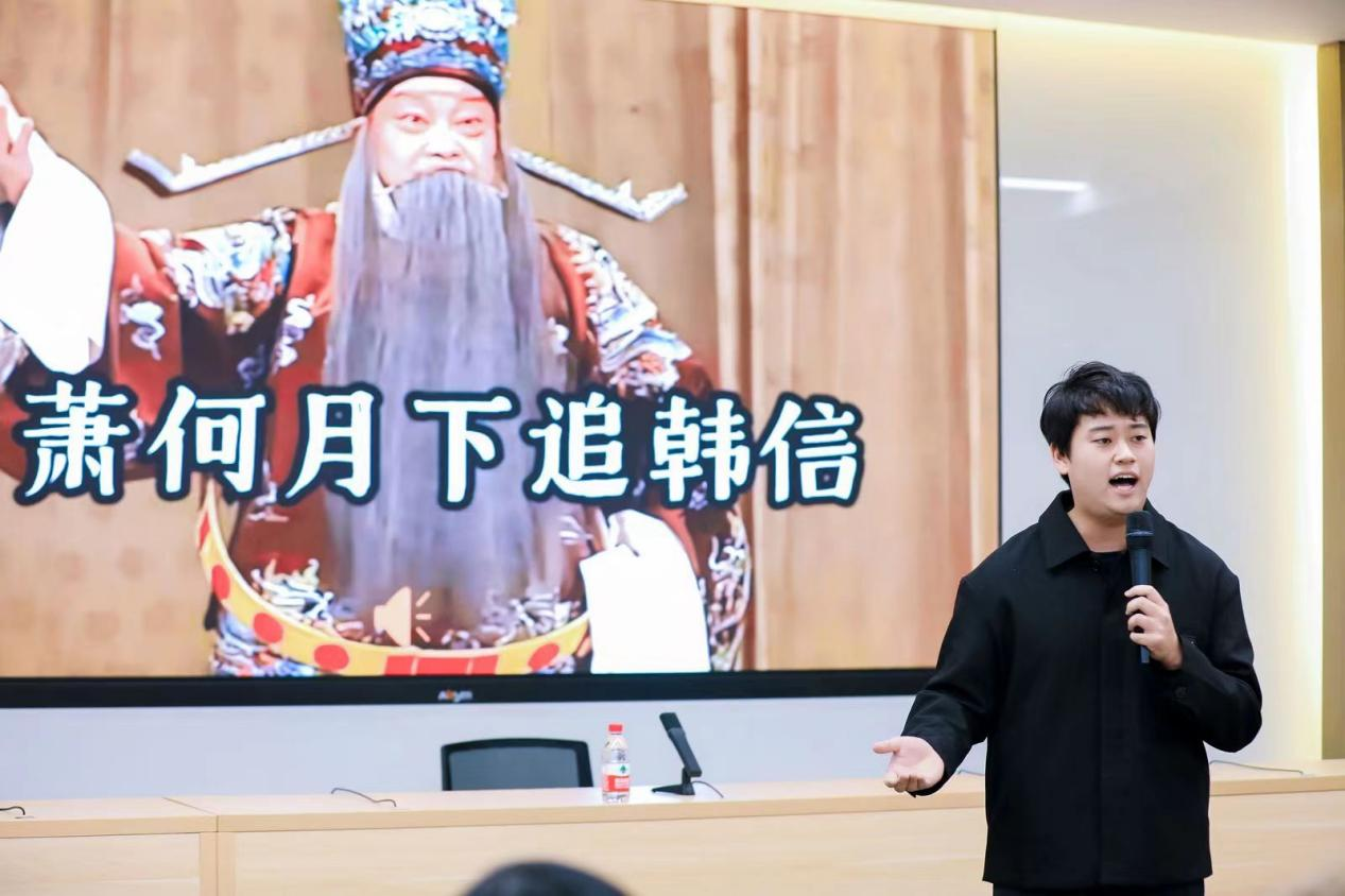 365完美体育2023级本科生表演了精彩的节目。王英昊同学演唱了京剧选段《萧何月下追韩信》,唱腔高亢嘹亮,赢得了阵阵掌声。