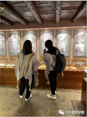洛克故居门前用东巴文书写的对联“新年新月新气象  千花万花已出来(根据纳西族阿妈介绍音译)”让党员教师感受到了象形文字的魅力。