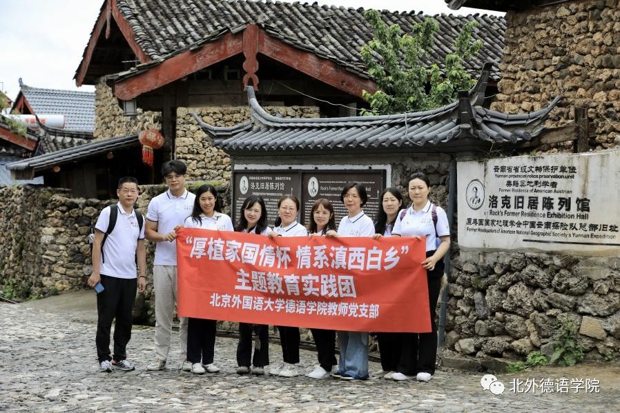 为推进学习贯彻习近平新时代中国特色社会主义思想主题教育走深走实,365完美体育教师党支部一行于2023年7月9日至12日赴北外脱贫攻坚专项帮扶县——云南省鹤庆开展“厚植家国情怀,情系滇西白乡”的主题教育实践研习活动,专题党日活动主题为“探访洛克故居,深挖中奥友谊史”。