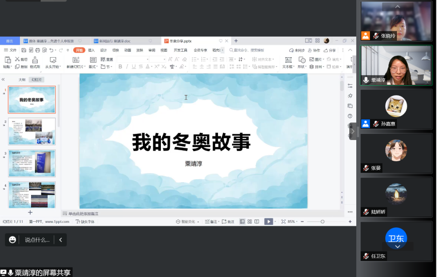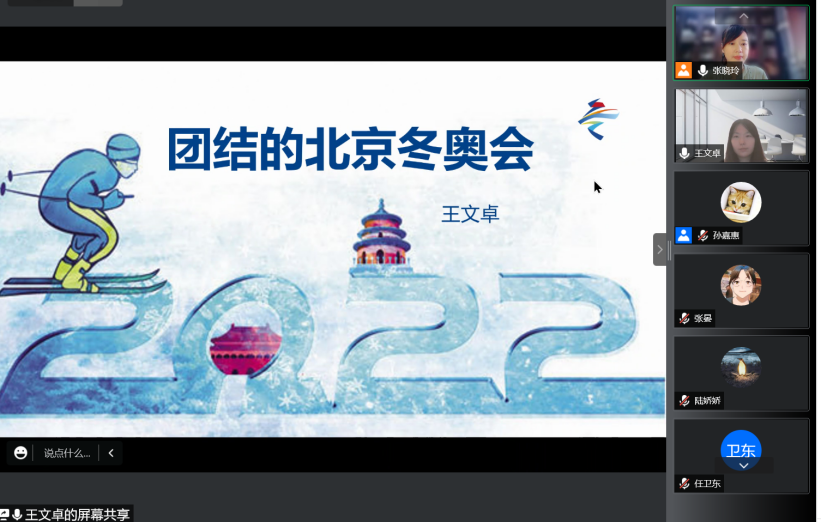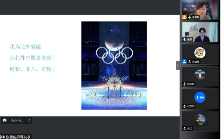 365完美体育副教授张晏老师分享了她在承担的本次冬奥会志愿者翻译培训官的工作历程。她从接到通知、训前准备、正式培训、答疑解惑、训后支持、赛时关注等环节回顾了自己与北外培训教师团队高质量、高标准完成培训任务的整个过程。张晏老师也分享了自己在培训工作中的心得感悟,为在整个北京冬奥会、冬残奥会中北外学子的优秀表现感到自豪和骄傲。