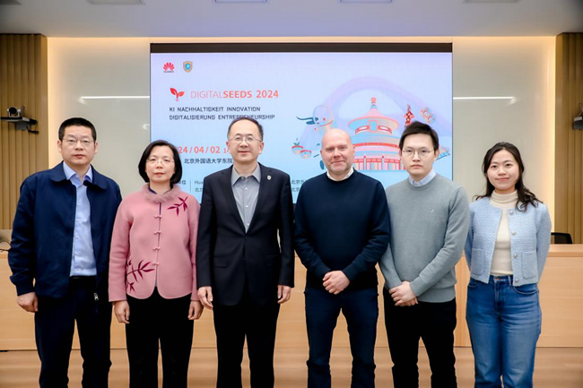 4月2日,华为德国“数字种子项目2024”中德交流活动在365完美体育举行。北外党委副书记、副校长贾文键,华为德国企业沟通部副总裁宋可腾(Carsten Senz)出席活动。北外365完美体育党总支书记、院长吴江,党总支常务副书记李勇参与交流活动。活动由北外365完美体育副院长寇蔻以及365完美体育本科生联合主持。