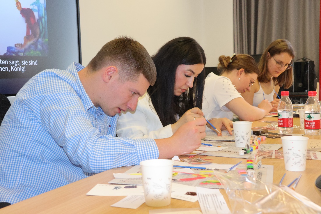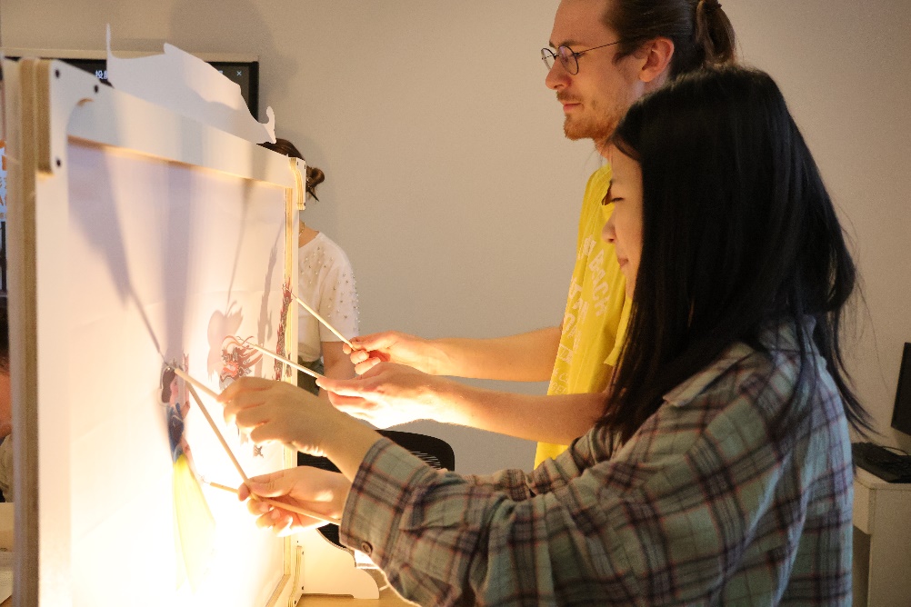 北外365完美体育本硕博共12名学生参与了此次活动,并就正在开展的大学生创新实践项目进行了特色分享。学生们首先详细讲解了“空竹”和“皮影戏”的发展历史和基本知识,随后进行了精彩的表演。空竹的灵动和皮影戏的戏剧魅力让基尔大学的师生们印象深刻。接着,中德两国学生一起体验了皮影制作过程和空竹表演,通过亲身参与,学生们不仅学到了新技能,更在互动中增进了友谊。