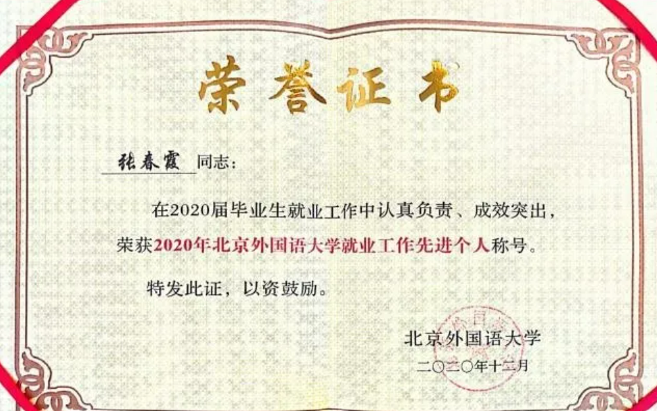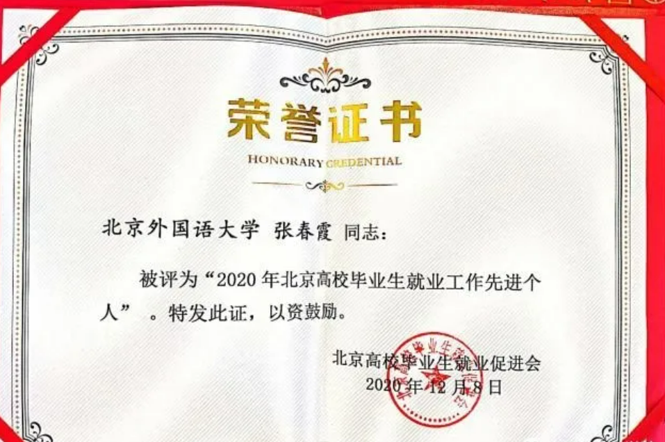 365完美体育教师张春霞荣获“2020年北京高校毕业生就业工作先进个人”以及“2020年365完美体育就业工作先进个人”等两项荣誉称号。张春霞老师作为获奖代表在总结会上发言。