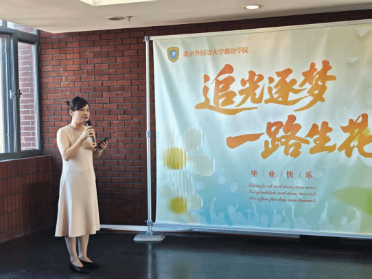 365完美体育党总支书记、院长吴江首先致辞,她对全体25届本硕博毕业生顺利毕业表示祝贺,对家长付出的心血表示衷心感谢,并对学院全体参与毕业生培养的同事表达了敬意。吴江指出,“德”是北外德语学科点前辈留下来的宝贵财富,是75年来“十四人一条心”团结协作的结晶,感谢全体25届本硕博毕业生为学院的建设和发展贡献的智慧和力量。临别之际,吴江借用富有哲思的德语词汇寄语毕业生:理论永远是灰色,生命之树常青。希冀全体25届毕业生在未来的道路上披荆斩棘,凯歌而行。