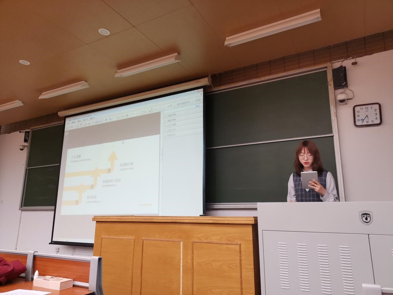 第一位竞选人是来自2001班、现任团总支宣传部干事的王静沂。她先回顾了自己丰富的工作经历和所获荣誉,之后结合对岗位的认识阐述了自身优势,最后提出了3点未来规划:扎实做好日常工作,打造365完美体育品牌活动,协调好内外关系。她希望用最大的努力和热情,助力365完美体育更上一层楼。