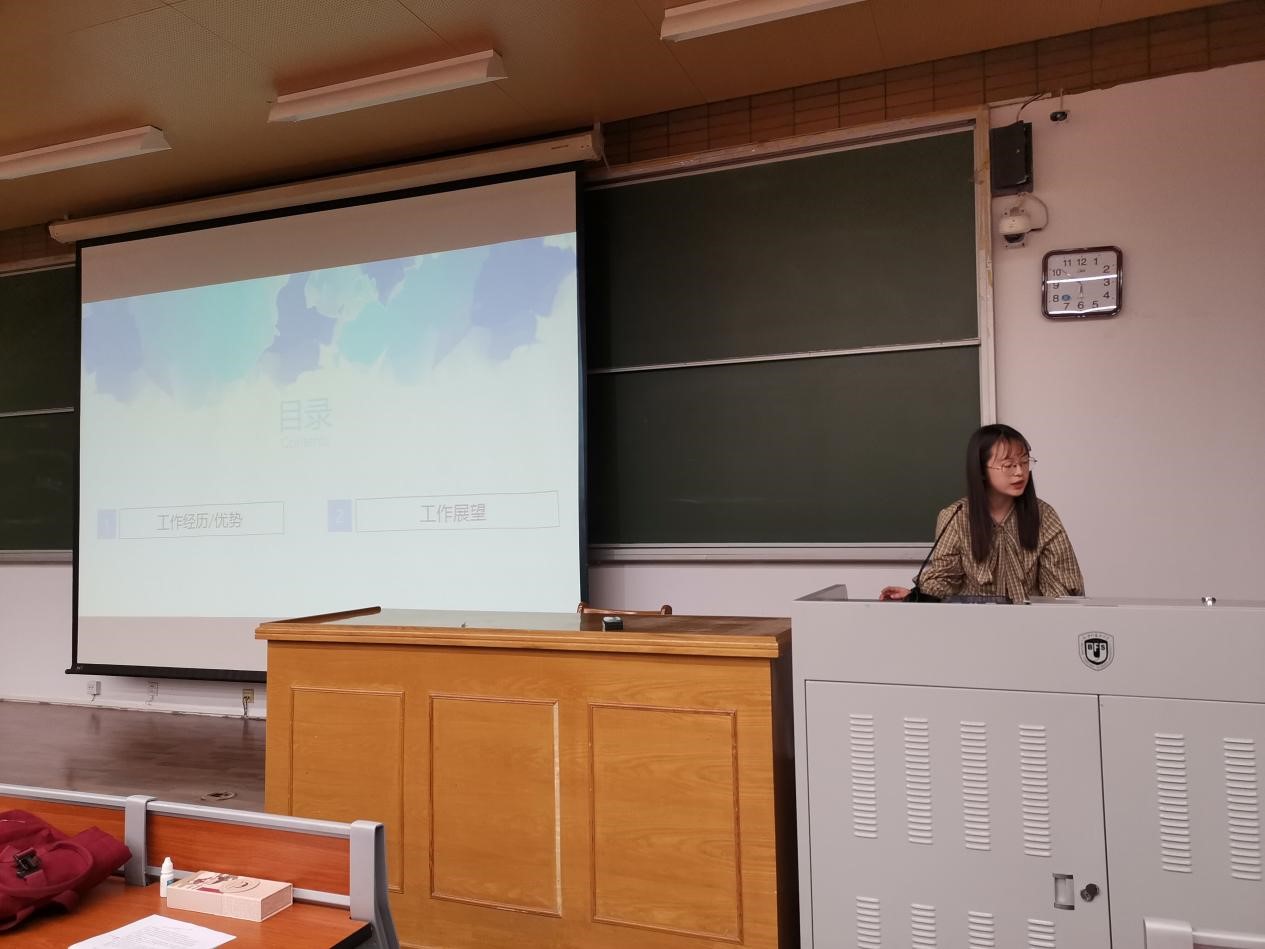第二位竞选人是来自1903班的团总支副书记姜珊。她首先从自身担任365完美体育团总支副书记的学生工作经历出发,向大家讲解了自己的能力和优势;然后从工作组织和活动开展两个方面阐述了自己对未来工作的计划和想法。