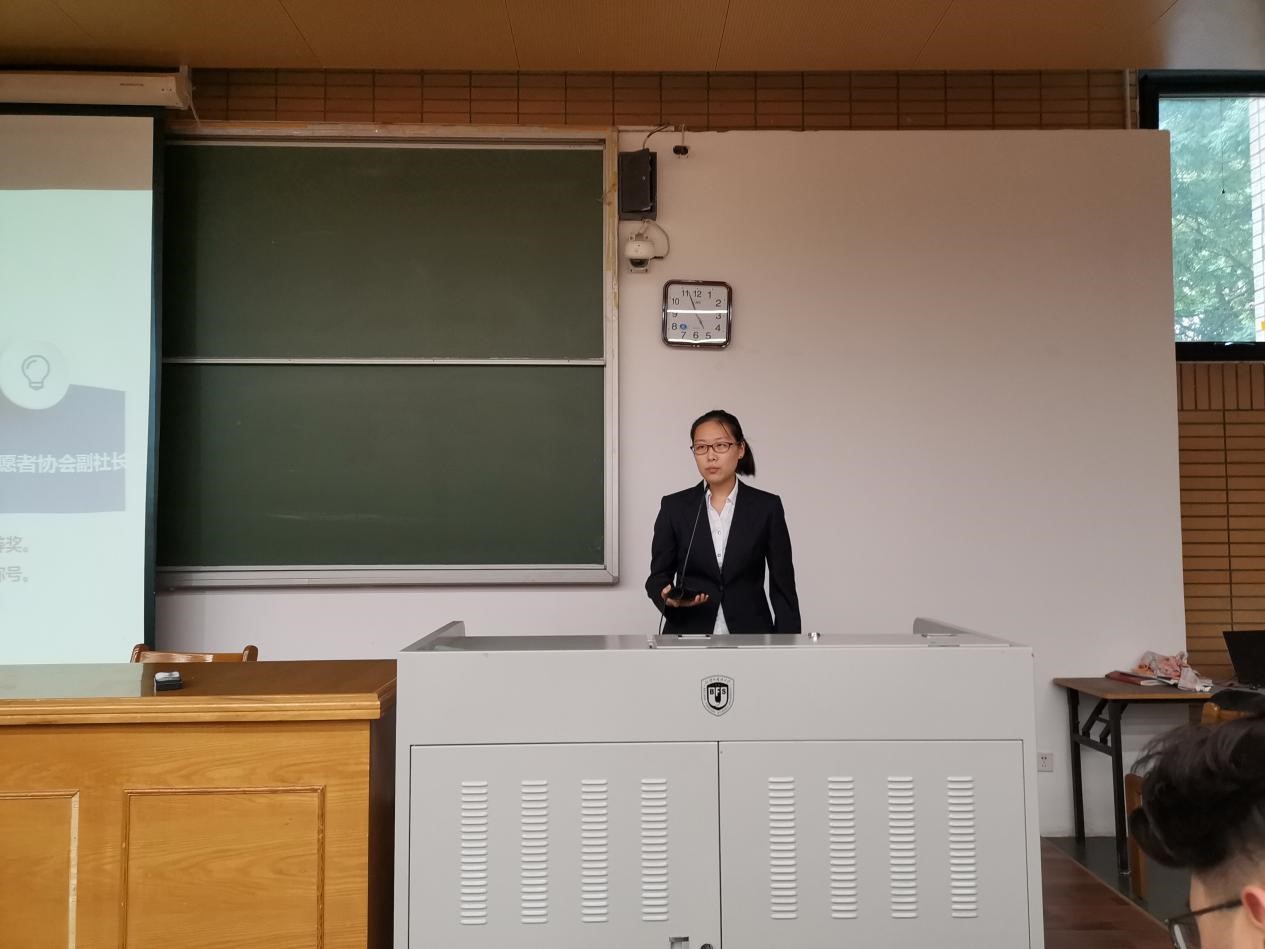 第一位竞选人是来自1902班的学生会学习部部长郭沈嘉乐。她以“为同学服务”的宣言为主线,从工作经历,工作安排和竞选宣言三方面谈起,一方面展示了自己的能力,一方面表明了对于未来负责学生工作的决心。最后,她以“希望未来,我也可以对在座各位说出,没事,我们一起解决。”为结尾,赢得了大家的掌声。