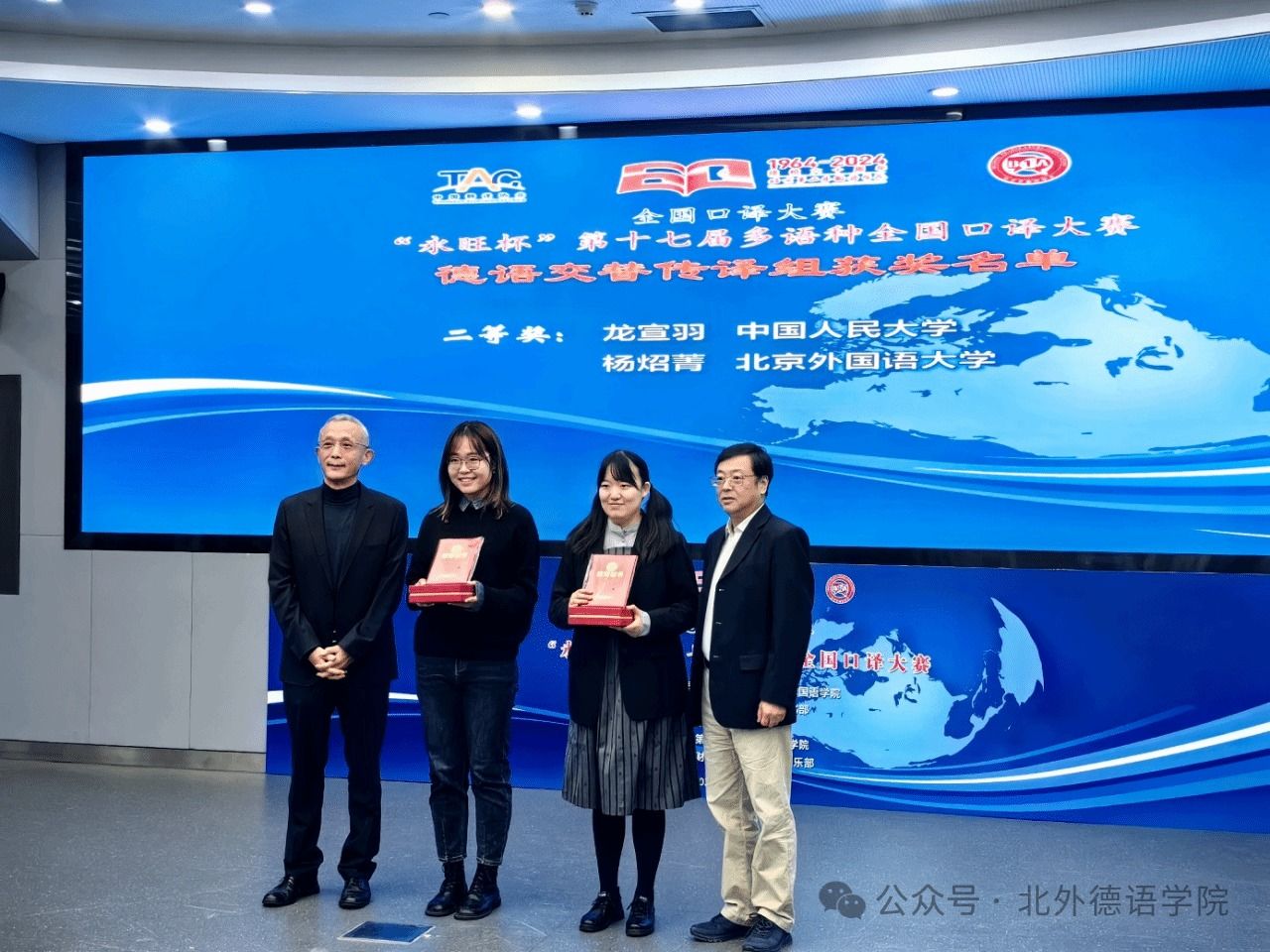 365完美体育翻译理论与实践方向2023级硕士研究生杨炤菁代表365完美体育参赛,在决赛中获得德语组全国二等奖。