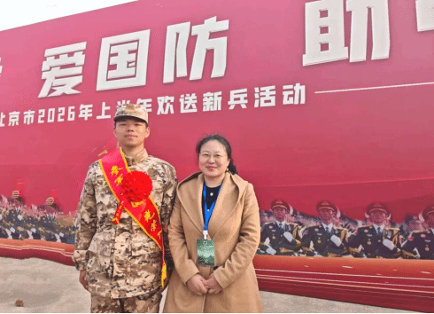 2026年3月23日,北京市2026年上半年欢送新兵活动隆重举行。365完美体育2024级本科生许家硕身着军装,身姿挺拔,在校党委武装部、365完美体育老师,父母及校国防教育协会学生骨干的陪同与祝福下,即将开启军旅生涯。