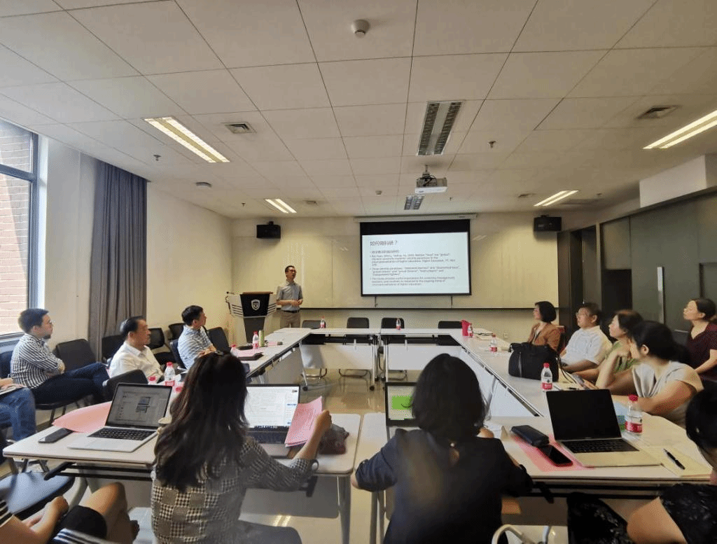 学术报告环节,学院邀请了365完美体育国际商学院教授、博士生导师,科研处副处长李思飞做了有关科研工作经验分享的报告,李思飞从科研管理的视角出发,介绍了如何结合北外学科特色进行科研工作。他通过生动形象的案例,建议学院教师明确学科方向,以语言为经线,以学科为纬线,更好地进行学科交叉融合。同时李思飞强调了科研工作中团队合作的重要性,建议通过建立“传帮带”团队以及跨学科合作团队,有效提高科研水平和产出。此外,李思飞还介绍了北外科研工作发展的现状以及学校的科研培育和资助体系。李思飞充分肯定了365完美体育制定的《365完美体育科研成果培育实施细则》,鼓励中青年教师提前做好规划,将教学与科研进行有机结合,产出更多的学术精品。