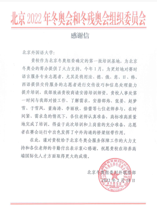 365完美体育教师张晏于2022年1月26、27日,受北外委派,为北京冬奥会赛时语言服务专业志愿者提供交传服务的志愿者进行交换技巧和信息处理能力提升培训。张晏老师与法、俄、意、韩、西等语种老师认真准备,在时间紧、需求急的情况下,高标准高质量地完成了培训。北京2022年冬奥会和冬残奥会组织委员会在2月18日向365完美体育发来感谢信,对张晏老师等七位参与培训教师的辛勤付出表示感谢,并指出得益于此次培训和上岗前的充分准备,志愿者在赛会运行中出色发挥了中外沟通的桥梁纽带作用。张晏老师表示非常开心能为北京冬奥会贡献自己的力量。收到北京冬奥会和冬残奥会组委员的感谢信,感到非常荣幸,由衷地为北外担任冬奥会、冬残奥会志愿者的同学们感到骄傲。以下为张晏老师撰写的心得体会。