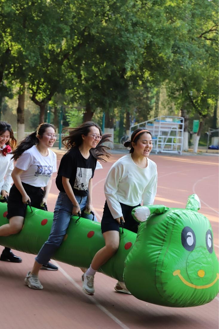 趣味运动会共分为七个项目:“杯中乒乓”、“眼疾手快”、“运乒乓球”、“转圈抱团”、“跳长绳”、“过河搭桥”、“猛龙过江”,考验参赛队伍团结协作、互相配合的能力。为了让同学们尽快熟悉比赛规则,每一支队伍都有机会试玩。在试玩阶段,大家已经表现得跃跃欲试,热火朝天。