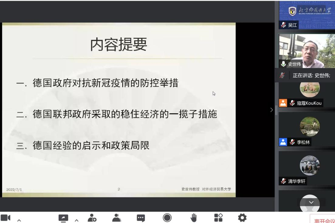 新冠疫情在全球范围内已肆虐了近三年,对包括德国在内的世界经济造成了巨大冲击,稳定经济成为所有国家的重要话题。此外,去年德国大选成立的三党联合政府也引发了学术界的高度关注。在本次讲座中,史世伟就新冠疫情下德国政府的经济促进政策进行了学术分享。