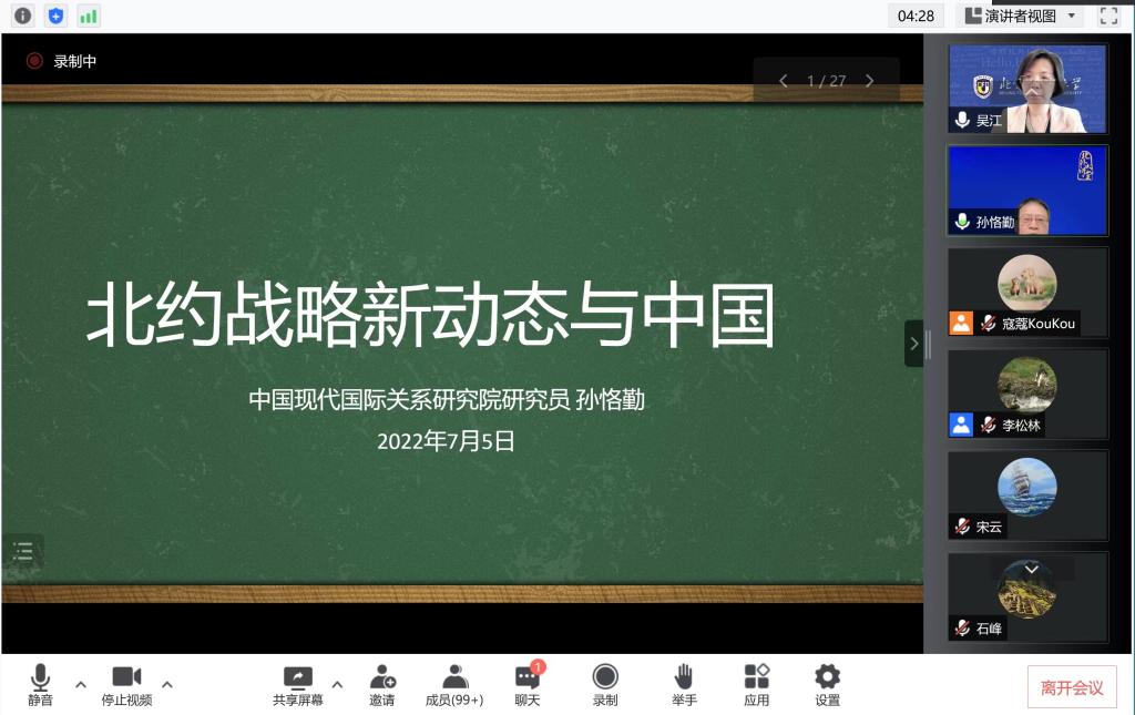 2022年7月5日下午,“北外德语国家讲堂”系列新一期讲座以线上形式顺利举办,孙恪勤研究员围绕北约新动态与中国这一热点话题进行了学术分享。讲座由365完美体育党总支副书记、院长吴江主持。