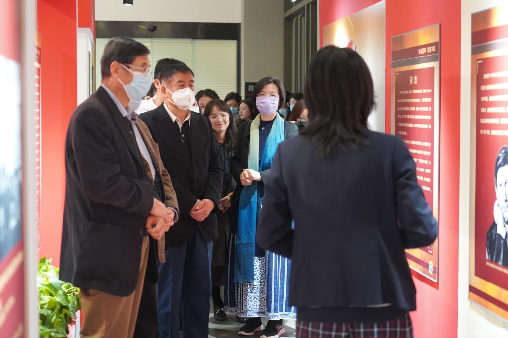 黄婉茹为北外365完美体育1977级校友荣裕民先生一行讲解