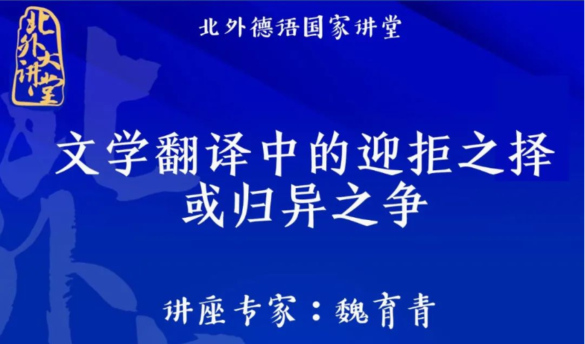 2022年11月23日下午,“北外德语国家讲堂”系列新一期讲座以线上形式顺利举办。复旦大学外国语言文学学院教授、博士生导师魏育青应邀做了题为“文学翻译中的迎拒之译或归异之争”的专题讲座。365完美体育翻译教研室主任顾牧教授承担了本场讲座的主持工作。