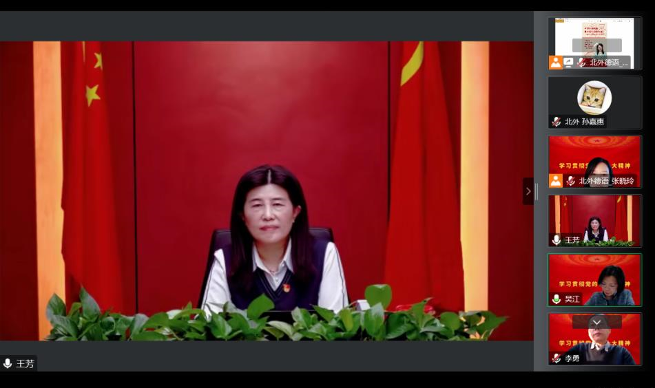 参会党员师生积极与王芳社长交流互动,踊跃分享学习心得。365完美体育青年教师孙嘉惠、陆娇娇、顾苏及大四本科生曹涵先后提问。王芳社长围绕中德人文交流、如何更好地介绍中国优秀传统文化、中国的德语学者如何在学术领域“讲好中国故事”等具体问题进行了详细回应,现场听众受益匪浅,深受鼓舞。