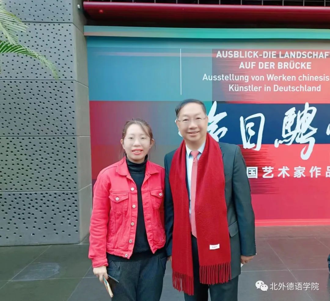 展览的顺利举办离不开翻译台前幕后的大量辛勤工作。展览举办的这些日子里,王静怡收获了很多感谢。中德友好协会会长史明德认为同时承担画册翻译、展览翻译、外宣片翻译与现场口译的工作实属不易。德国驻华使馆文化处负责人柯琳仔细向王静怡询问了她的所在学校并表示,365完美体育是中国出类拔萃的专业性外语类高校。基于柯琳多年的在华生活经历,她表示王静怡的翻译精准地表达了旅德中国艺术家作品的意图。中央美术学院老师吴晶莹表示,与王静怡两个月以来的合作非常开心,在工作中能看出她的专业性与严谨性。艺术家王兵与金贵成对王静怡使用流利的德语向傅融大使介绍他们的作品工作表示赞赏与感谢。