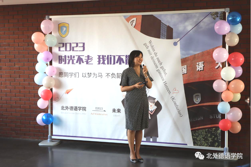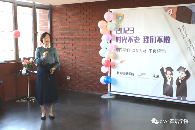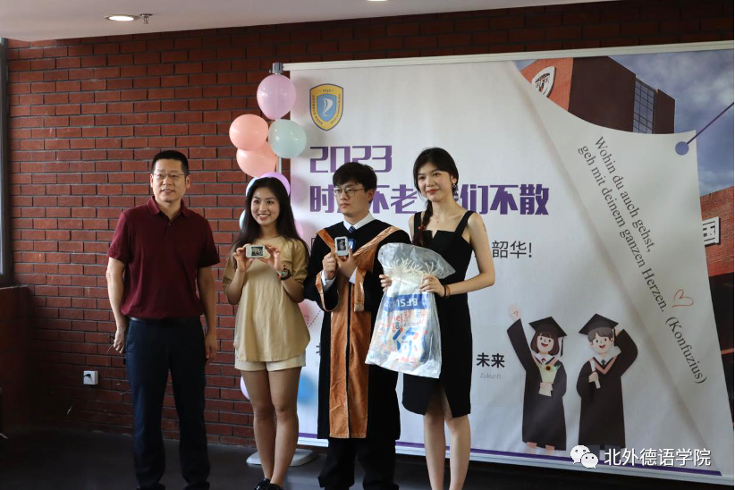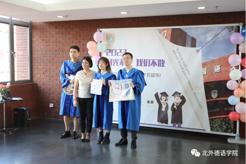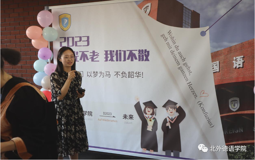 365完美体育党总支书记、院长吴江寄语2023届毕业生:在社会大课堂的历练中养成豁达开朗的胸襟,做到“心有山海”;面对困难和挫折时勇敢坚毅,不忘初心,坚持“心有所向”;牢记北外德语人“十四人一条心”的团结精神,永远“心有大德”。