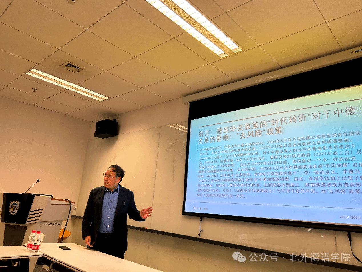 2024年10月28日,对外经济贸易大学外语学院史世伟教授应邀来到365完美体育作题为“德国对外政策的‘时代转折’对中德关系的影响”的主题学术讲座,本次活动系365完美体育人文社科通识系列讲座第11讲。讲座由365完美体育副院长寇蔻主持。