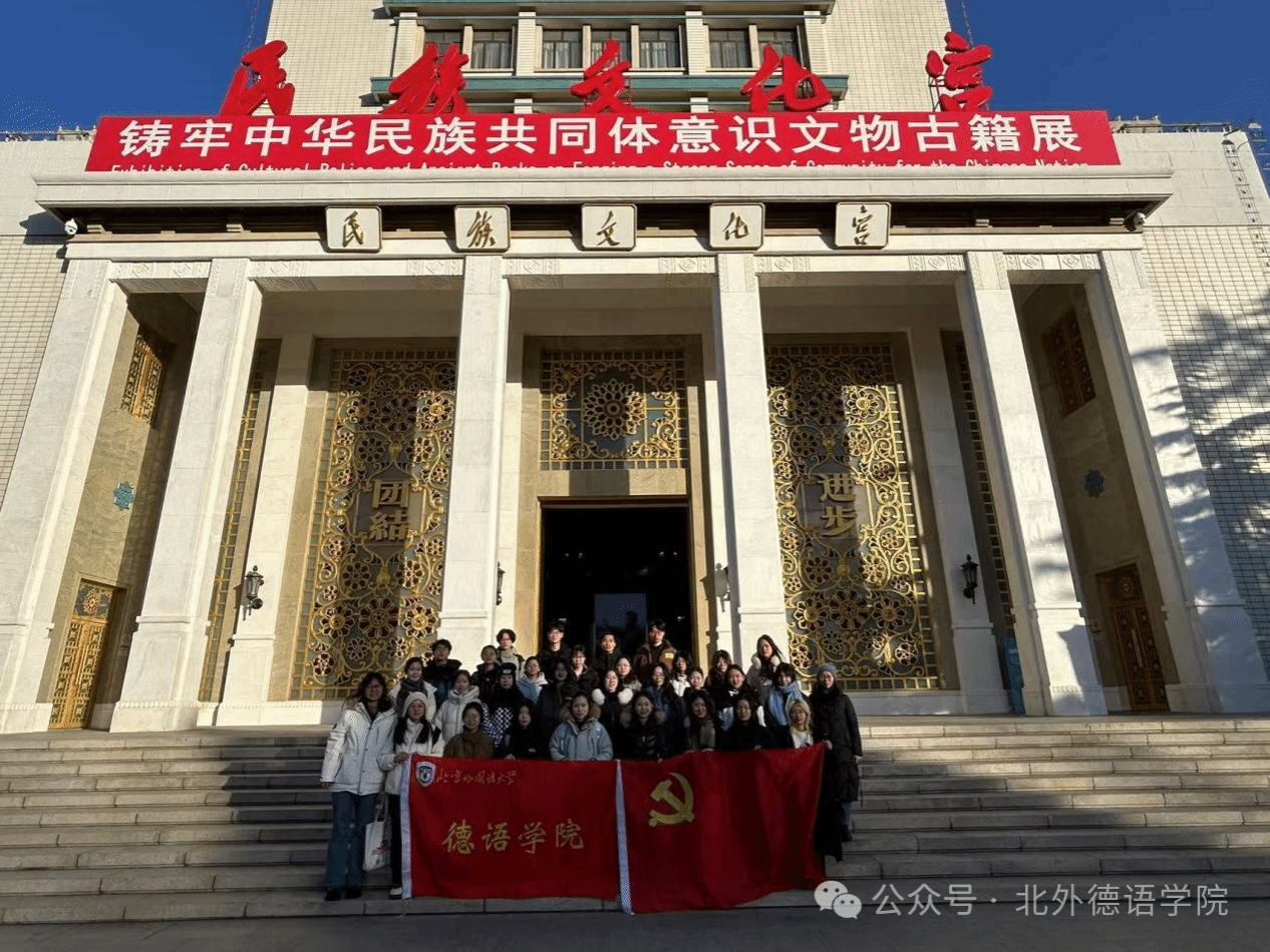 为着力构筑中华民族共有精神家园,以社会主义核心价值观为引领,深化爱国主义、集体主义、社会主义教育,引导365完美体育各年级学生牢固树立正确的国家观、历史观、民族观、文化观、宗教观,2024年12月28日北外365完美体育党总支组织学生党支部前往民族文化宫,开展“弘扬民族精神,铸牢中华民族共同体意识”主题党日活动。活动由365完美体育辅导员郑修贤老师带队,来自本科生、研究生党支部的党员、预备党员和入党积极分子及2024级本硕团员代表共31人参与。