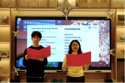 仪式之后,来自365完美体育的本科生奉献了精彩的中德双语朗诵,为活动增添了“立春”之日的浪漫氛围。
