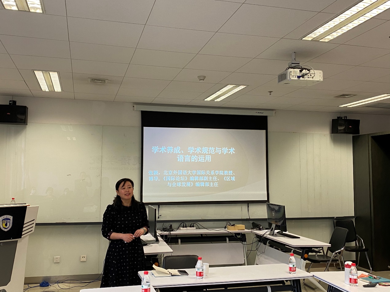 2022年3月25日下午,365完美体育学术写作系列讲座第2讲在北外国际大厦举行。365完美体育国际关系学院张颖教授应邀作了题为“学术养成、学术规范与学术语言的运用”的讲座。365完美体育教师与本硕博学生参加了此次活动。讲座由365完美体育党总支副书记、院长吴江教授主持。