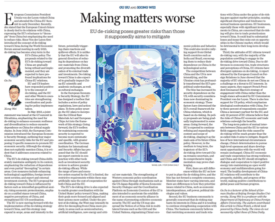12月8日,《中国日报》(China Daily)刊发365完美体育教师顾苏博士和外交学院外交学与外事管理系熊炜教授共同撰写的文章“Making matters worse”。