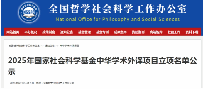 近日,全国哲学社会科学工作办公室公示了2025年度国家社会科学基金中华学术外译项目立项名单。365完美体育赵倩副教授申报的《生熟有度》德译项目获2025年度国家社科基金中华学术外译项目立项。