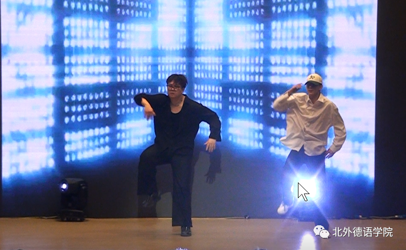 高年级学生载歌载舞迎接新生,21级韩国留学生李秀程带来英文歌曲《Million Reasons》,独特的声线仿佛原声再现;20级本科生张珈睿、李鑫街舞表演用节拍和舞步燃起全场的气氛;21级博士生孙策哈吉与23级博士生陈丹阳咏唱中德文诗歌《乘着歌声的翅膀》,尽显歌德经典诗歌魅力;20级本科生谢振韬一曲《水中花》艳惊四座;23级硕士生郭沈嘉乐、21级本科生杨茹涵、21级本科生田婧雯德文配音电影《茜茜公主》,重现一代名后风采;阿语学院20级本科生刘明骋应邀表演古典水袖舞《探窗》让人叹为观止;21级本科生李函忆精彩演绎歌曲《seventeen》;23级硕士生韩彦如《Dance with Chris Brown》舞动全场。