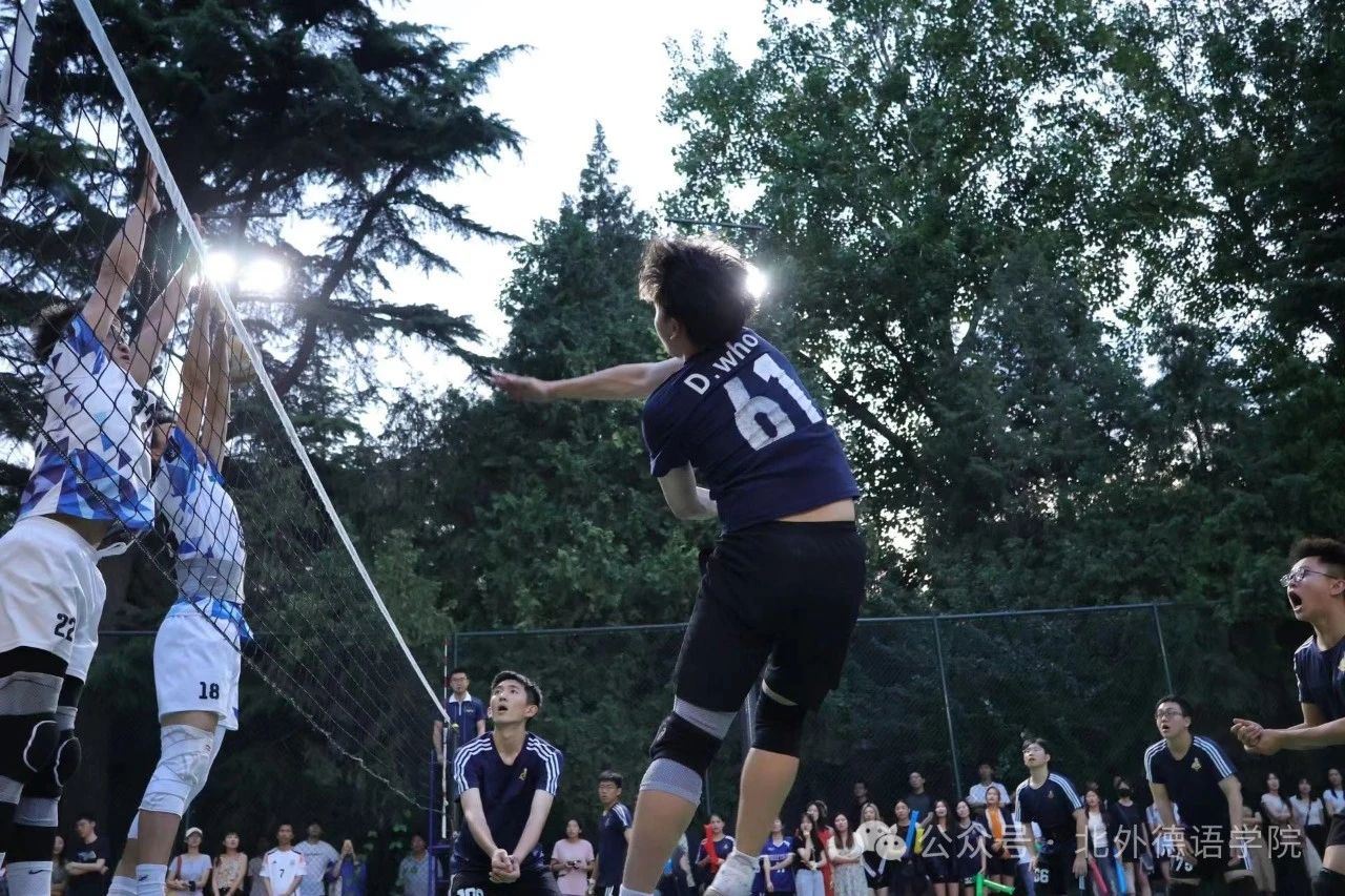 今年的北外杯是我作为替补队员参与的一届比赛。去年有一种种原因以二传的身份在大一加入到德院男排首发阵容,并依靠攻手的素养拿下季军的好成绩。“德语加油!”“德语必胜”“我们是,冠军!”每一次口号的变化,都像是捅破一层窗户纸,让我更加深刻的体会到排球所能带给每一位运动员的动力与能量;比赛前的热身、打垫、扣球,训练时的捡球、发球、配合,可以肯定的说,我们能得冠军,实至名归!