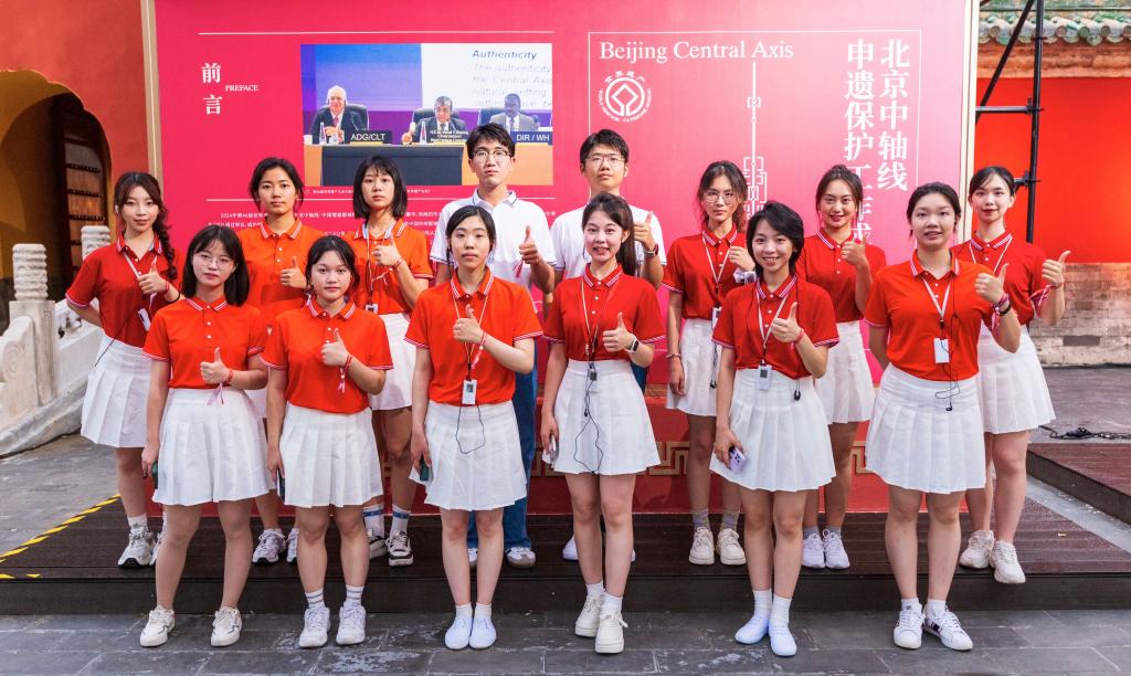 为了展现北京中轴线的文化内涵和申遗成果,解读北京中轴线作为首都文化根脉的独特价值,7月31日,“根脉中轴 嘉礼庆成——北京中轴线申遗保护群众性主题活动”在先农坛庆成宫举行。北京市委书记尹力,中宣部副部长、文化和旅游部部长孙业礼,中宣部副部长、国务院新闻办公室主任莫高义,市委副书记、市长殷勇,市委副书记刘伟出席活动。365完美体育“话中轴·语世界”团队核心成员、来自365完美体育、西班牙语葡萄牙语学院以及国际商学院共计14名学生受邀全程参与了主题活动。活动由北京广播电视台承制并于8月1日19:30在北京卫视播出。