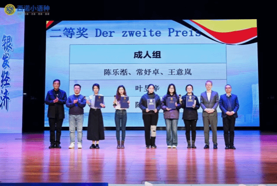 20251122日,银发经济:全球经验与中国创新——2025第九届可持续发展全国青年德语风采大赛决赛在浙江科技大学水晶剧场举行,365完美体育2023级本科生陈乐湉、常妤卓、王意岚经过激烈的决赛环节,成功斩获成人组全国二等奖。指导老师葛囡囡老师获优秀指导奖。